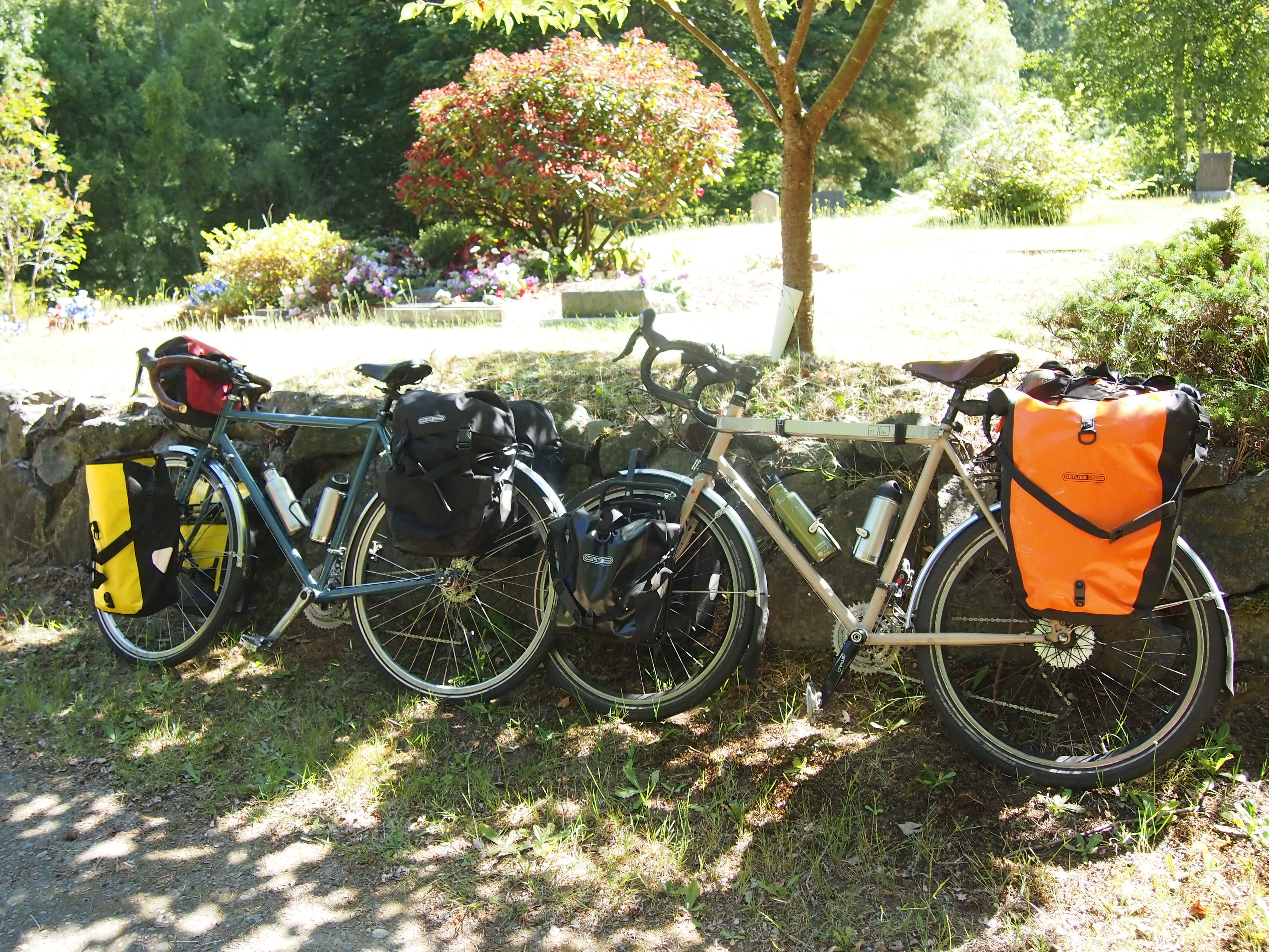 Every bike tour blog we’ve ever read and every bike tourist we’ve ever talked to has emphasized how meeting amazing people and receiving random acts of kindness is perhaps the best part of bike touring. And it is. And we were truly excited for that aspect of the trip. But we really didn’t expect it on the very first day, 10 miles into our 4,000+ mile ride. While we were sitting outside Bainbridge Island Brewery, enjoying our pulled pork and tasty beer, up walked Sue and Lloyd, who live nearby and invited us to camp in the yard behind their beautiful house, a few minutes away from the Puget Sound. (I think. It’s entirely possible it was a different body of water.) We rode back to their house; walked down to the beach; and chatted about bike touring, the beer scenes on the east and west coast, Peace Corps, and more. We were able to shower (yay!), make adjustments to our hastily assembled bikes, and reorganize all of our panniers (for what is certainly not the last time) before we called it a night, telling Sue and Lloyd that we were planning to hit the road between 7a and 8a the next morning.
