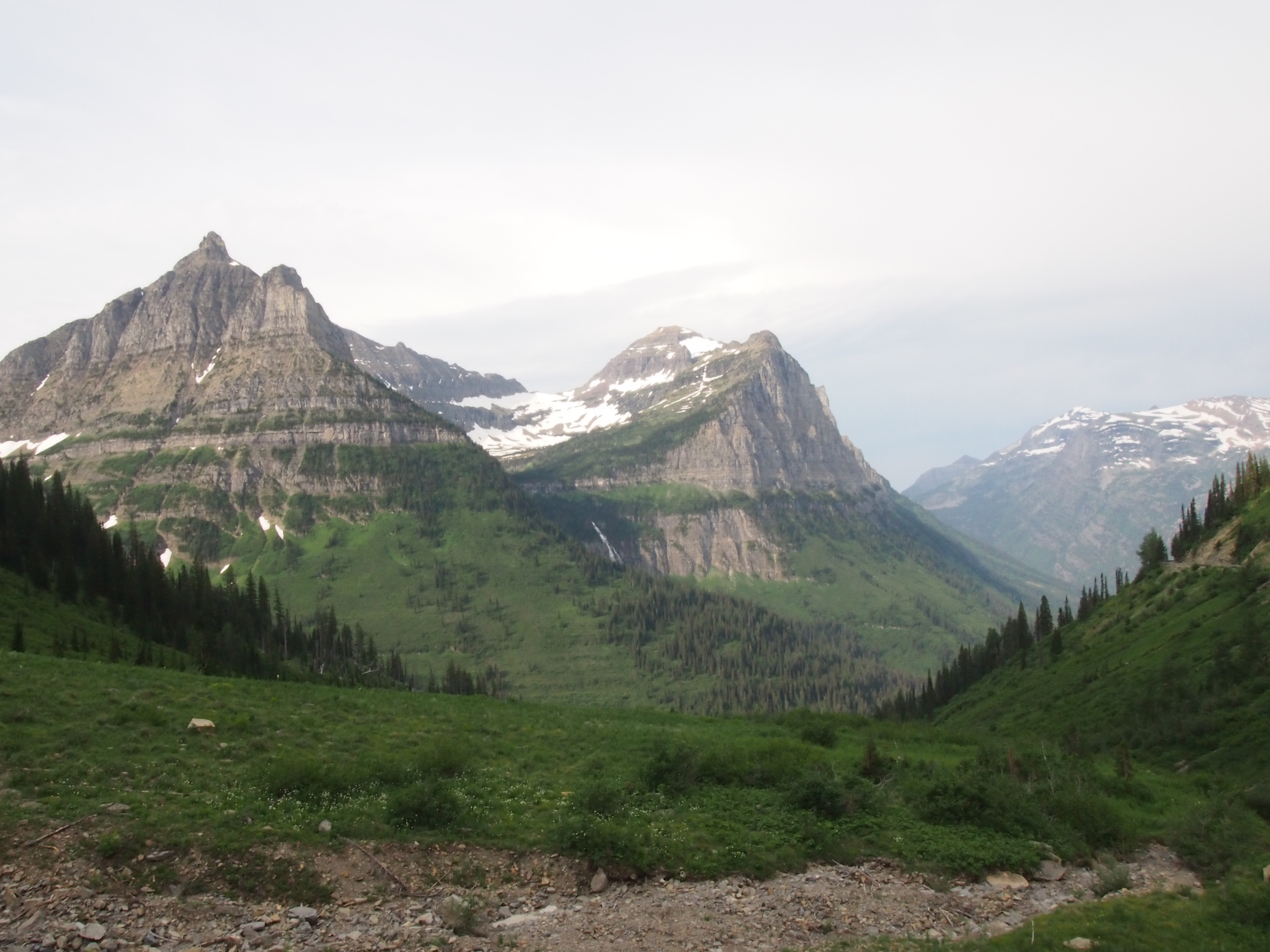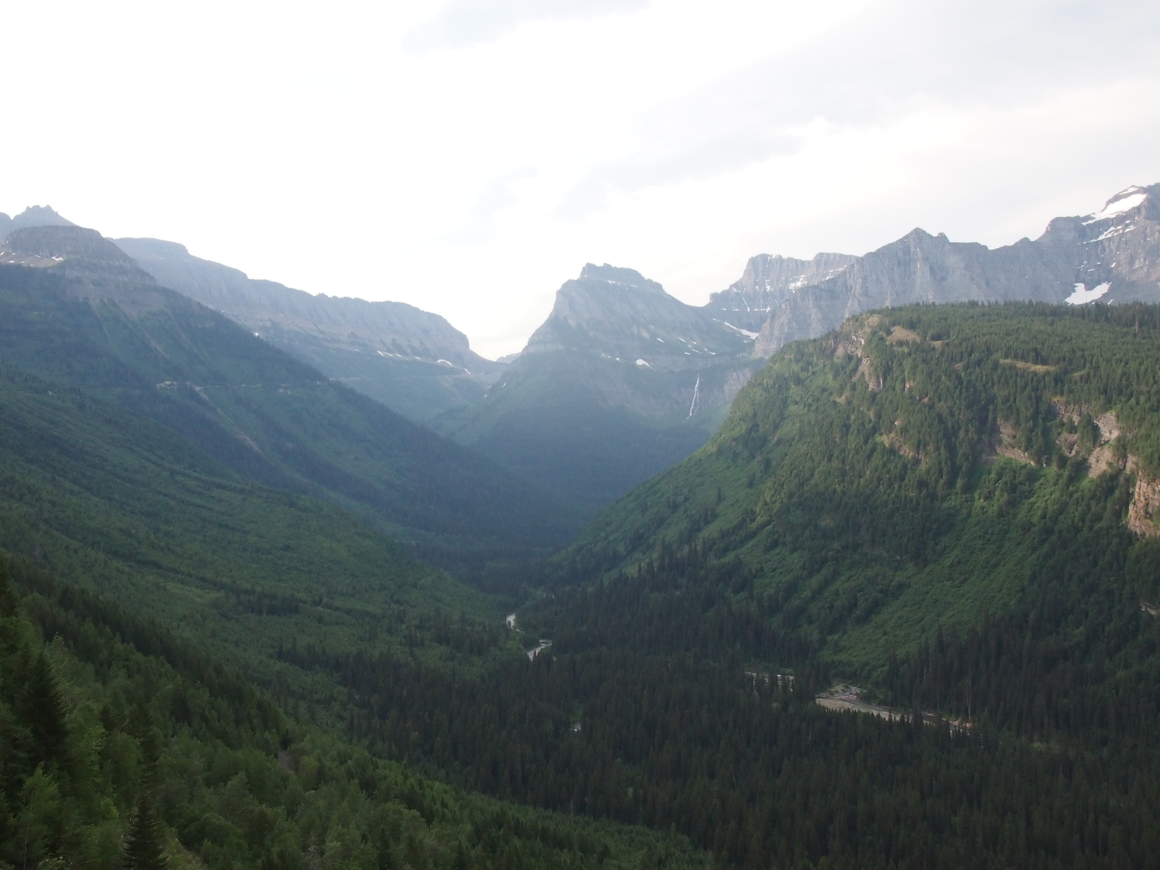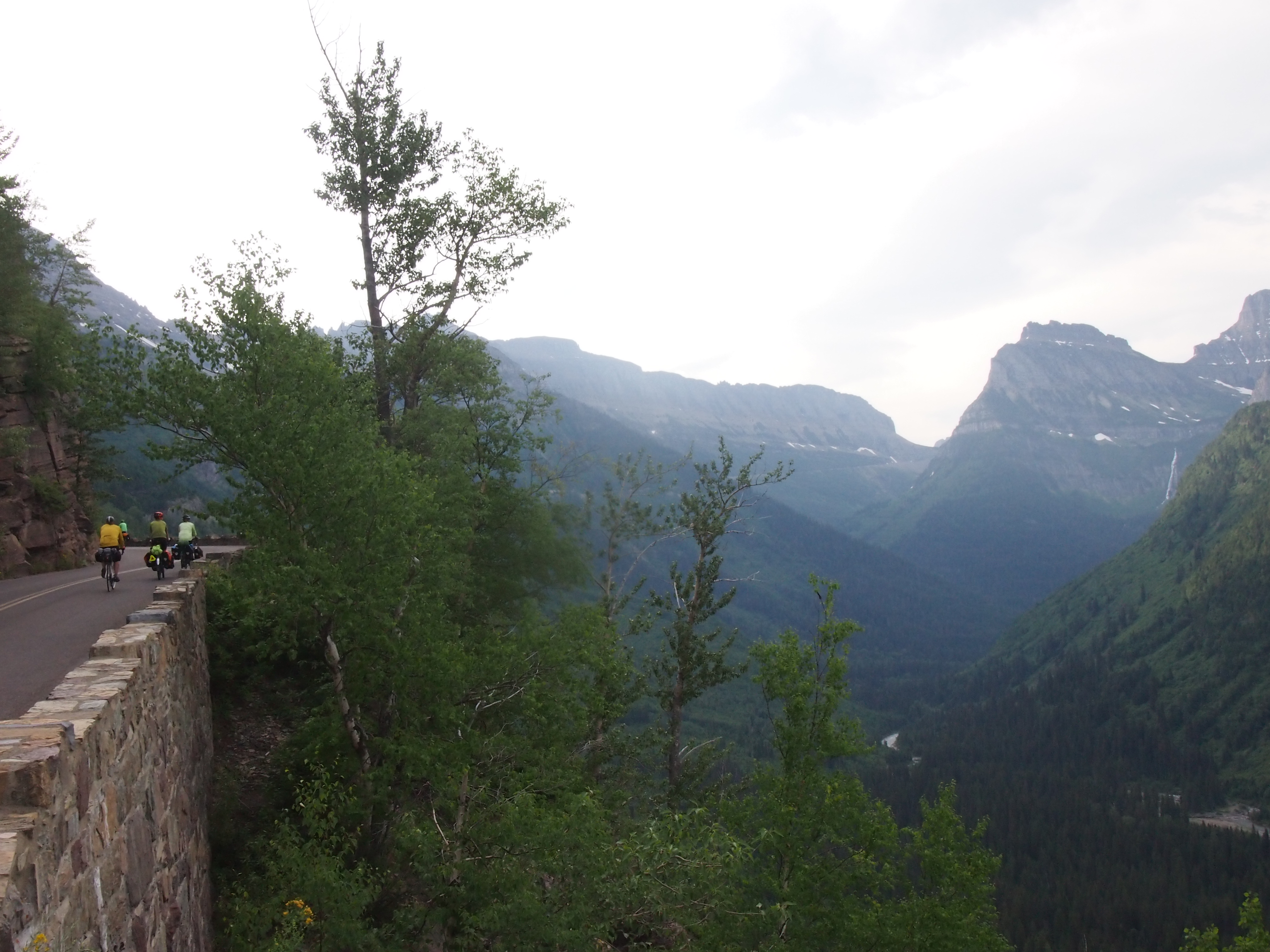 Going to the Sun Road was spectacular. We started the day with 10 miles of very gentle climbing, then began a much steeper, but perfectly graded eleven-mile ascent. When the park service built the road in the 1930s, they aimed to create a road that traced the side of a mountain at a steady grade and provided spectacular views. In our opinion, they succeeded! The views got more and more spectacular as we ascended. There were endless, picture-perfect vistas, gorgeous waterfalls, etc. on the way up. Pictures won’t do it justice, but they will do a much better job than I at conveying the wonder.