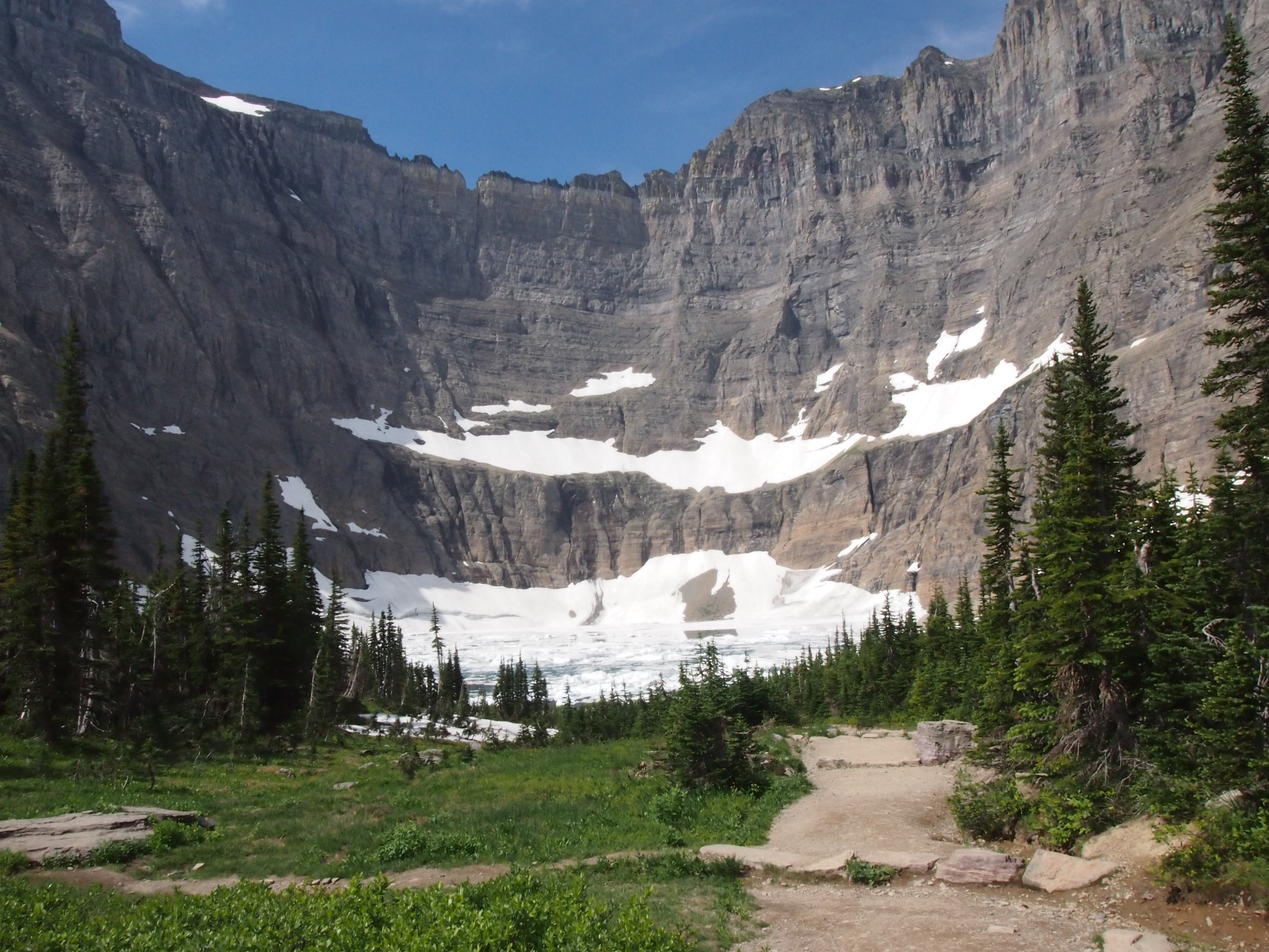 Our third day, we took a 10-mile hike to see the aptly named Iceberg Lake. The hike was very nice, but it had a lot to live up to after Grinell Glacier (which I think is the most beautiful hike I’ve ever been on). The nice thing about the hike to Iceberg Lake was that the entire hike had a mild, steady grade. The downside of that is that the gentle grade makes it a very popular hike and we didn’t have any of the solitude we had on the Grinell Glacier hike.
