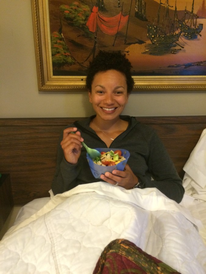 So here we are, catching up on our blog, eating a salad as penance for lunch, and watching TV. And we are clean.