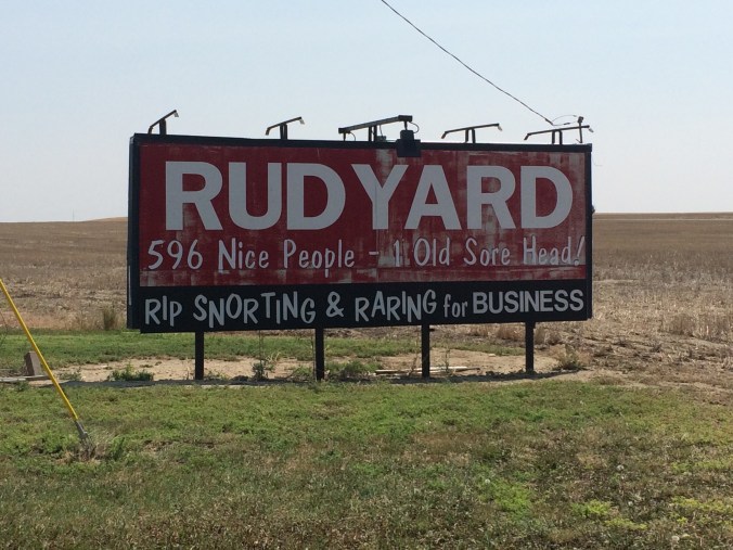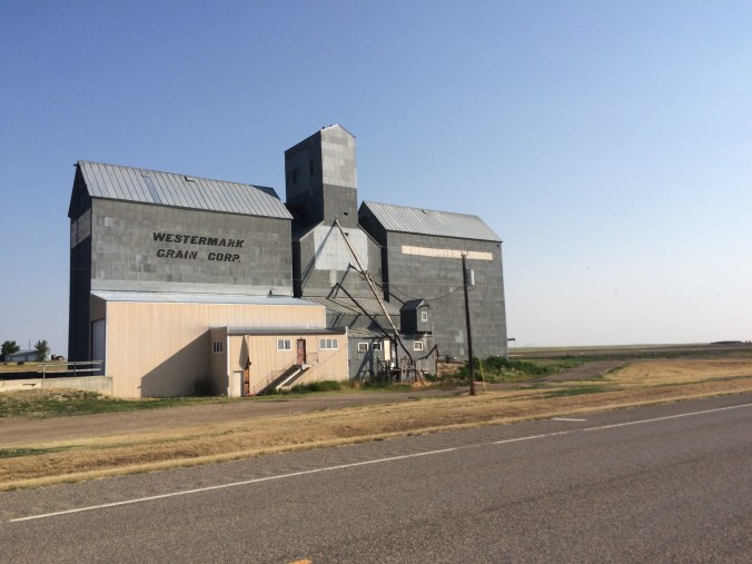 After breakfast we pushed on, determined to break our remaining 61 miles into manageable 20-mile increments. We passed through many grain fields (I had “America the Beautiful” stuck in my head all morning and couldn’t figure out why they weren’t golden waves of grain rather than amber until I finally saw an amber field of grain) and many cute towns with funky signs. We learned today that town=grain elevator. A town might also have a restaurant, car service shop, or convenience store, but not much else and not usually. Towns with grocery stores seem to be about 40-50 miles apart.
