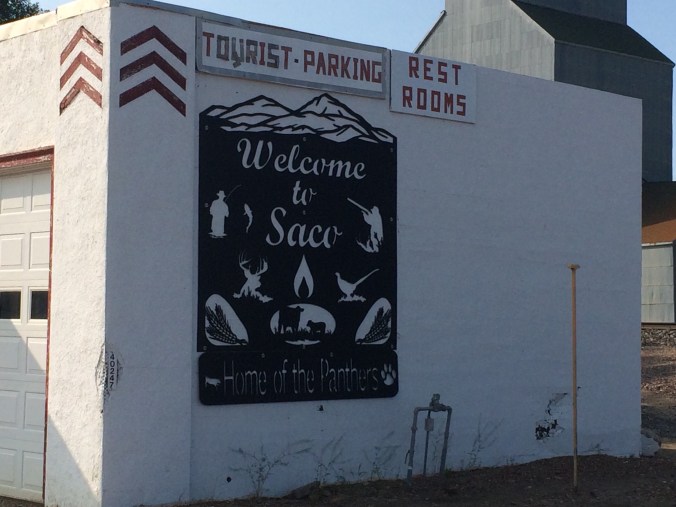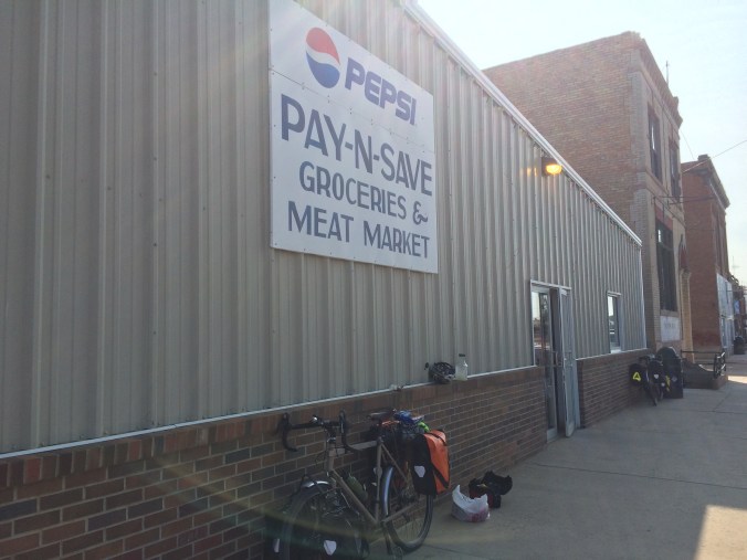 Terry gave us another amazing tip: there’s a butcher in Saco who cures his own meats and sells them in the grocery store in Saco. He wins all of the meat curing awards Montana has to give away, so this meat is apparently not to be missed. We stopped at the store and the lady working there was super friendly. She even opened a package of meat so we could try some (it lives up to the hype!) and she gave us the rest of the package for free! A bunch of people stopped in the store and grabbed armfuls of this meat and told us to stock up, that they come from 30 miles away just for this meat, etc. We bought as much meat as we could carry and a gallon of lemonade and stood outside to eat our second breakfast, consisting of that gallon of lemonade, Bloody Mary-flavored beef sticks, and Peanut Butter Oreos (a breakfast staple, naturally). As an aside: I’m really into the fact that I get to eat all of my guilty pleasure food in disgusting quantities and I’m not gaining 100 pounds. I hope I’m able to wean myself off when we’re not riding bikes all day.