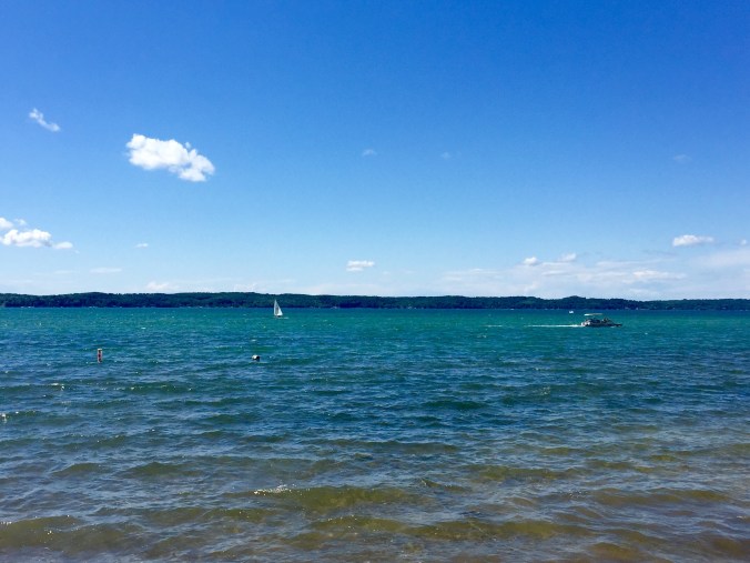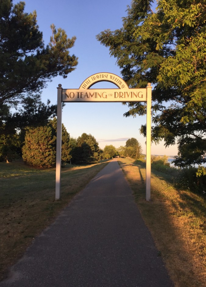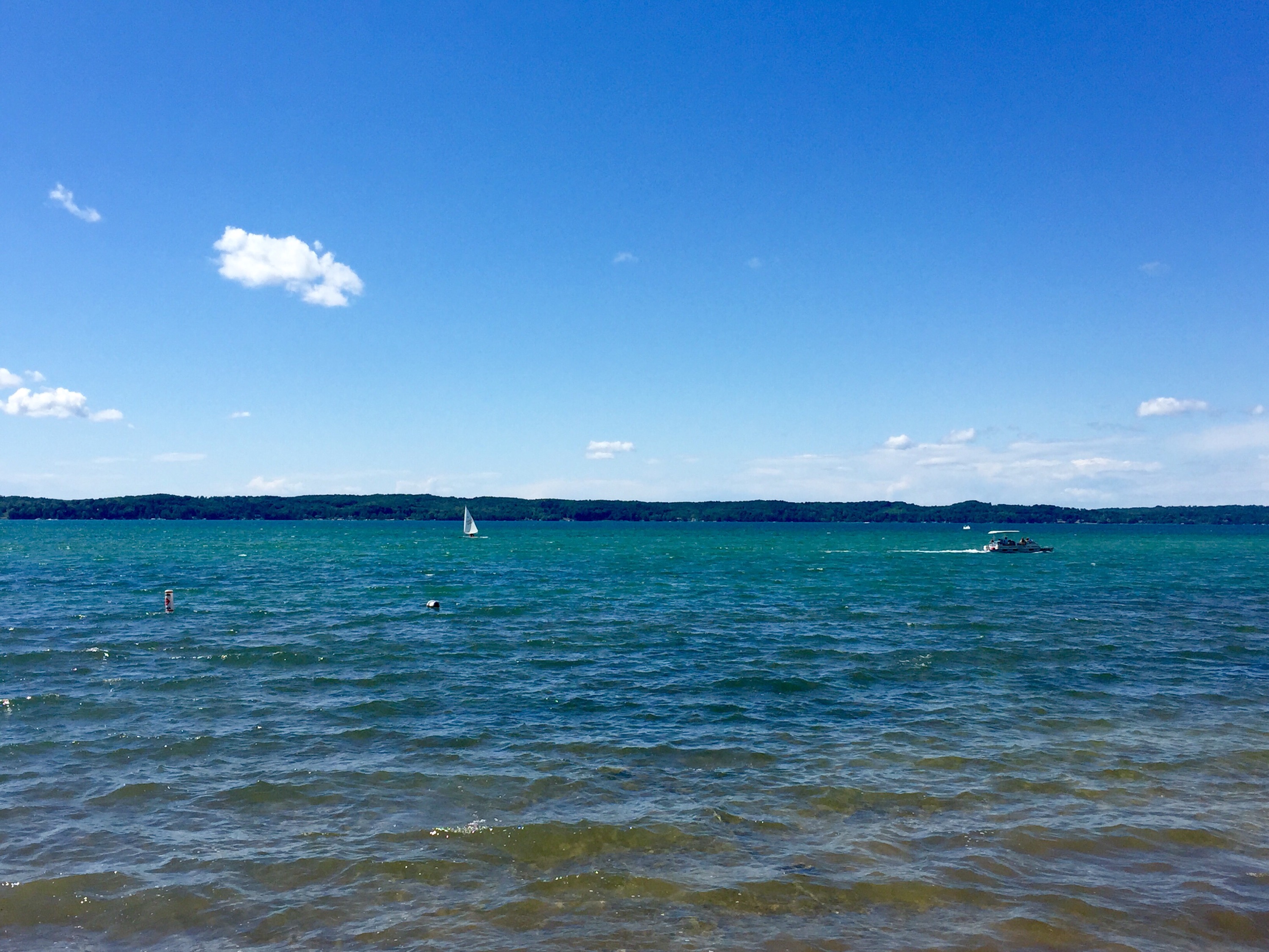 The day started out nicely with a dedicated bike path taking us five miles into the town of Petoskey. Petoskey is another touristy town with cute shops, cafes, etc. There was a coffee shop that looked like it came straight out of Brooklyn (Dripworks) that we would have stopped at, except we were hoping to make it to Interlochen, 100 miles away, and wanted to leave enough time to explore Traverse City. I’d like to come back to the northeastern coast of Lake Michigan eventually, though, without such a strict schedule. Had we not used up all of those rest days in Glacier, I would have liked to spend a few days exploring this area because it’s absolutely gorgeous and the water is the perfect temperature for swimming. Why have I never heard about this area before? I think the people who regularly vacation here want to keep it a secret. It’s just perfect here.
