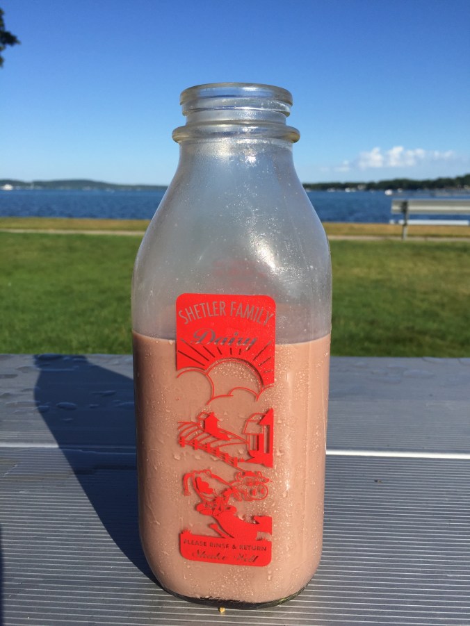 We got some local chocolate milk and snacks at the food coop in Boyne City, then sat in a lovely park by the water to eat. This chocolate milk was not quite as good as Crystal Farms or Dairigold, but better than any others we’ve tried.