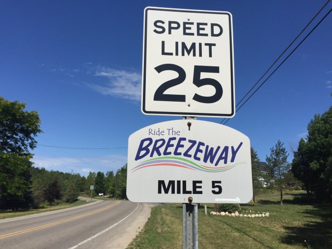 We carried on to Boyne City, guided by some handy arrows for a local biking event that perfectly matched the circuitous ACA route, to eat breakfast. As an aside, ACA’s route through this region is wacky and it seems inefficient. The maps say this is because they’re trying to keep us on paved roads, but I have to believe there’s a better way. It seems like they’re aiming for the hilliest bits of the state, too!