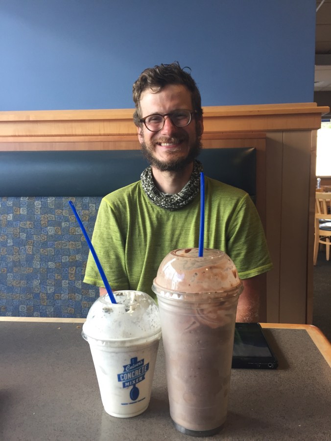 Our time on 72 was short, though, and we were rewarded with a dedicated bike path that, aside from a short detour, led us all the way into Traverse City, but first to a Culver’s where we loaded up on Concretes, mine much larger than Ted’s.