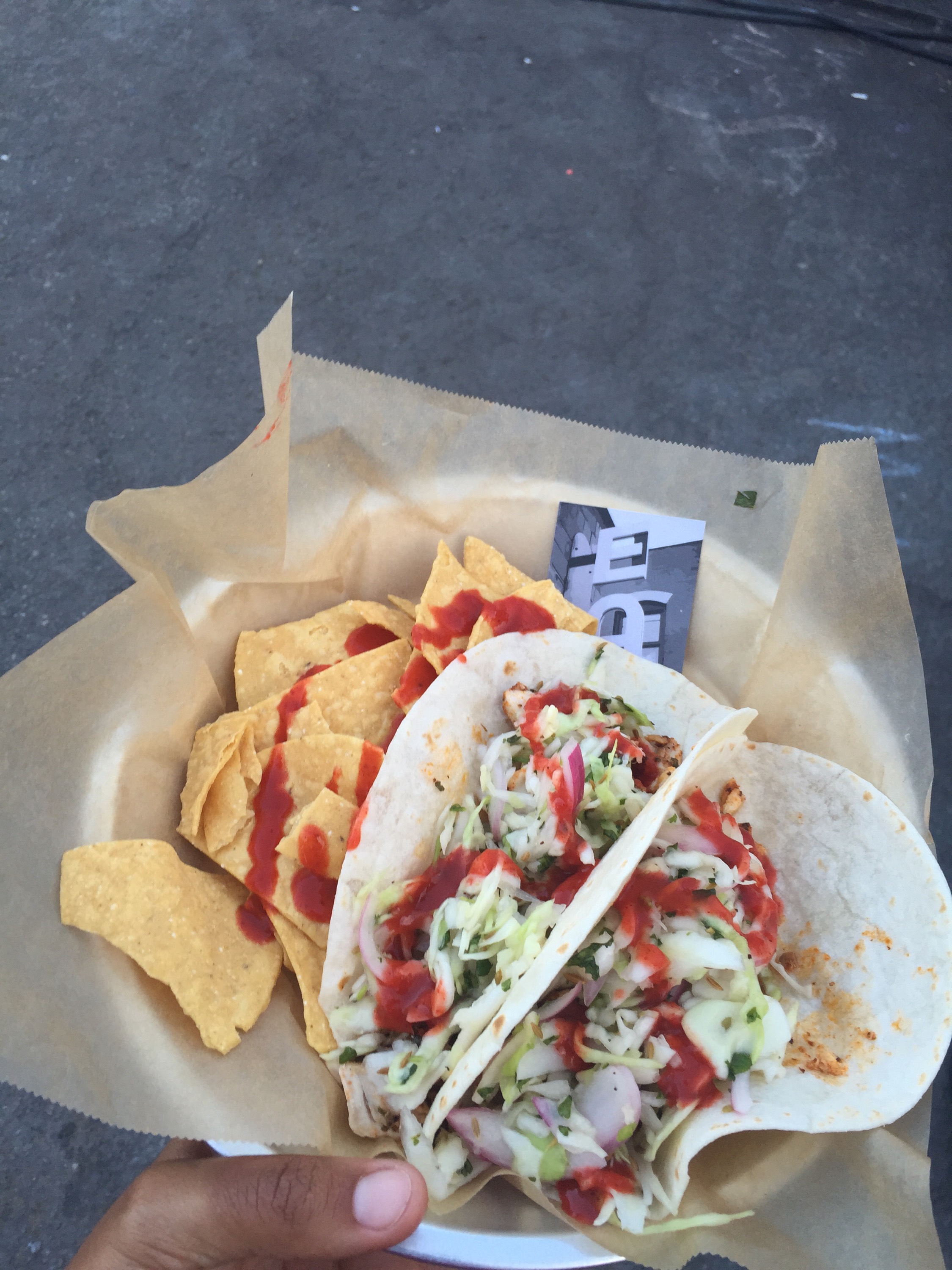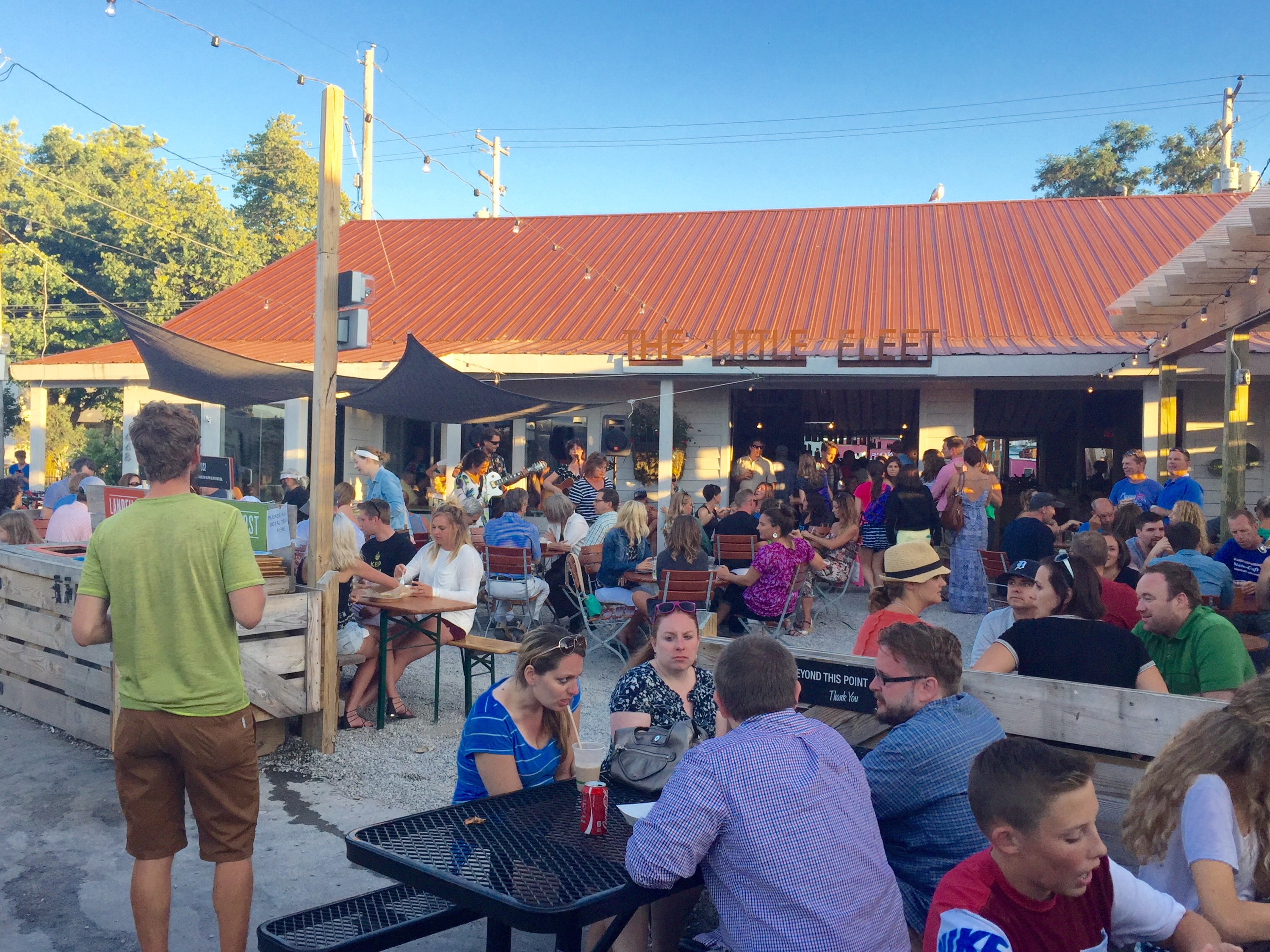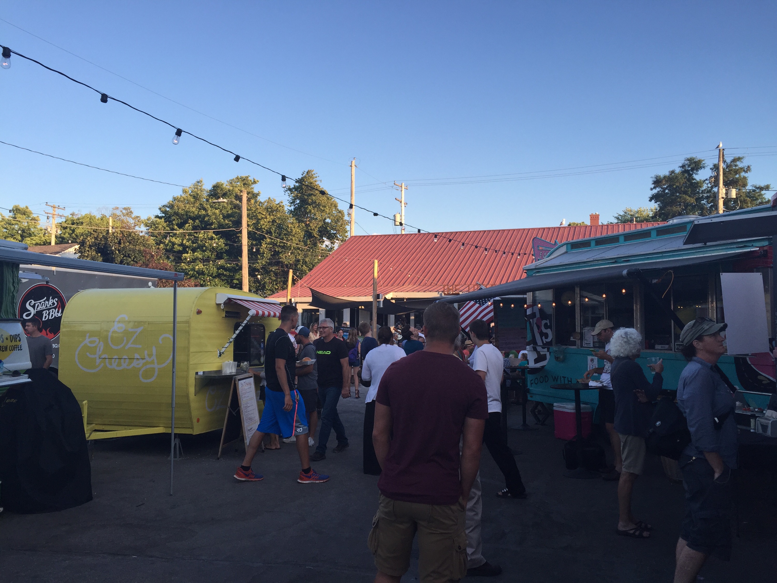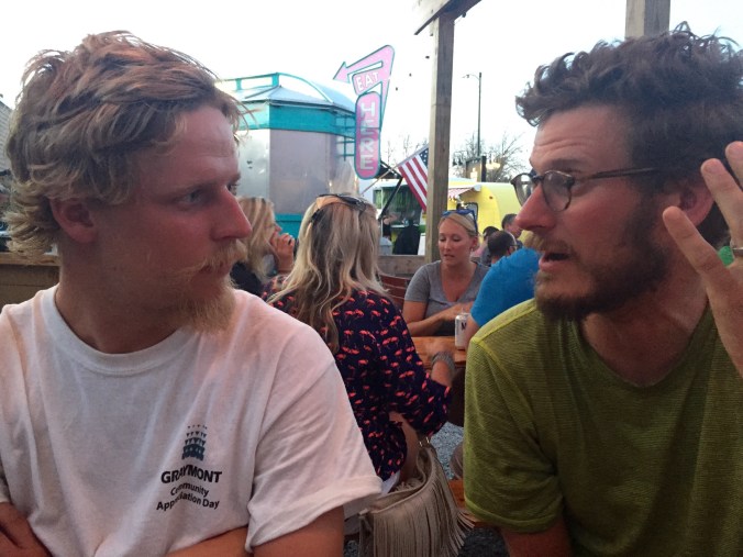 We then headed to a bar called The Little Fleet, which is a bar with garage doors that open up into an outdoor eating area and a parking lot with a fleet of food trucks. So cool! Our warm showers host for the night works there, so we went to say hi and grab a beer and maybe something to eat before heading to his house to sleep because we were both exhausted. We both got a beer and tacos (blackened whitefish for me, Korean beef for Ted) and hung out on the patio listening to live music. Ted ran into another bike tourist while getting another round of drinks so we chatted with him for a while. Maarten is from Belgium (Hoegaarden, in fact!) and is traveling from Vancouver to Montreal by way of…the Grand Canyon. This wasn’t his original plan, but he and his traveling partner decided to take a 2,000 mile detour to visit the Grand Canyon and the American Rockies. He’s meeting his Dad in Montreal, and they’re going to explore Quebec together.