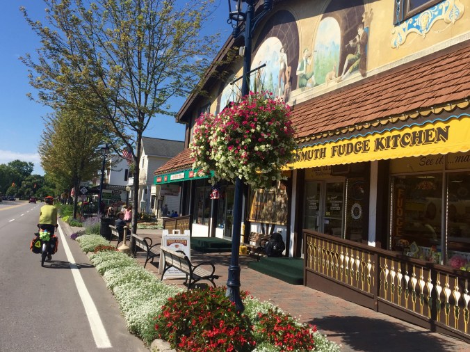 After Frankenmuth, we headed back northeast, enjoying a direct tailwind and speeding through Vassar and to Otter Lake, where we met Dan and Tom, two gentlemen who were touring around Michigan for a few days. Tom was a tour leader for Bike Centennial, the cross-country trip in 1976 that begot the Adventure Cycling Association, and when he retired at 65, he biked a loop around the U.S., then up through Canada to Alaska. This man’s got at least 39 years of bike touring under his belt, and he told us that he won’t let his age get him down.
