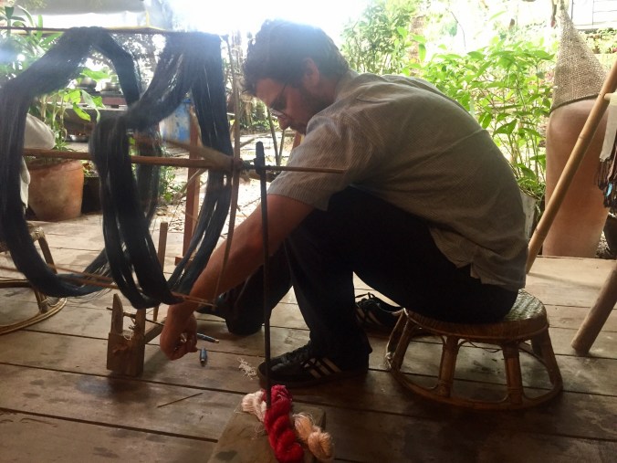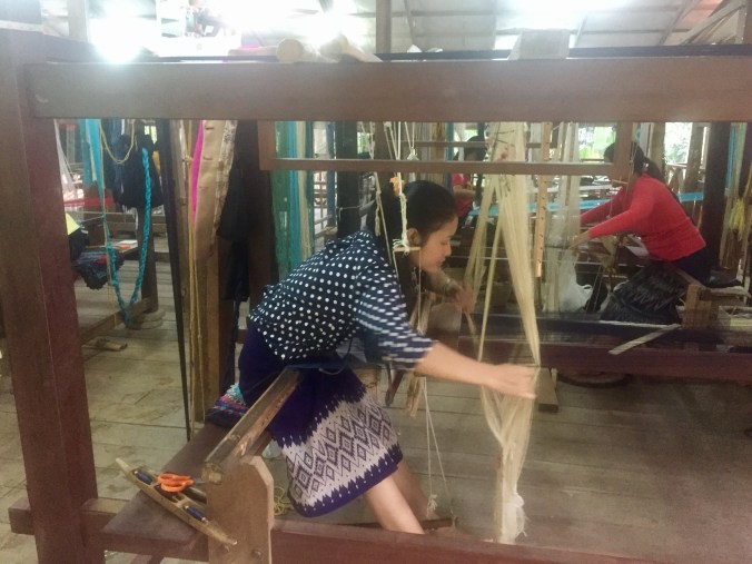 Next we headed to the Traditional Arts and Ethnology Center to learn more about some of the ethnic groups within Laos (there are 49 main ethnicities consisting of over 160 ethnic groups!) and their traditional crafts. Yet another heavenly place for me — it seems that each of the major people groups in Laos takes textile design very seriously and it was such a lovely experience to learn more about the history behind their craft, as well as to gain more appreciation for the incredible amount of time and creativity that go into making each piece. For example, the H’mong new year celebration is a huge event involving many festivities, including courtship (because the H’mong have a strict prohibition against marrying within one’s own clan and this festival is prime inter-clan mingling time), and mothers will take months to prepare costumes for their sons and daughters. As a perpetual craft-project-quitter, I am so impressed by the patience, diligence, and creativity that are so valued and abundant in this country. Another must-see if you come to Luang Prabang!