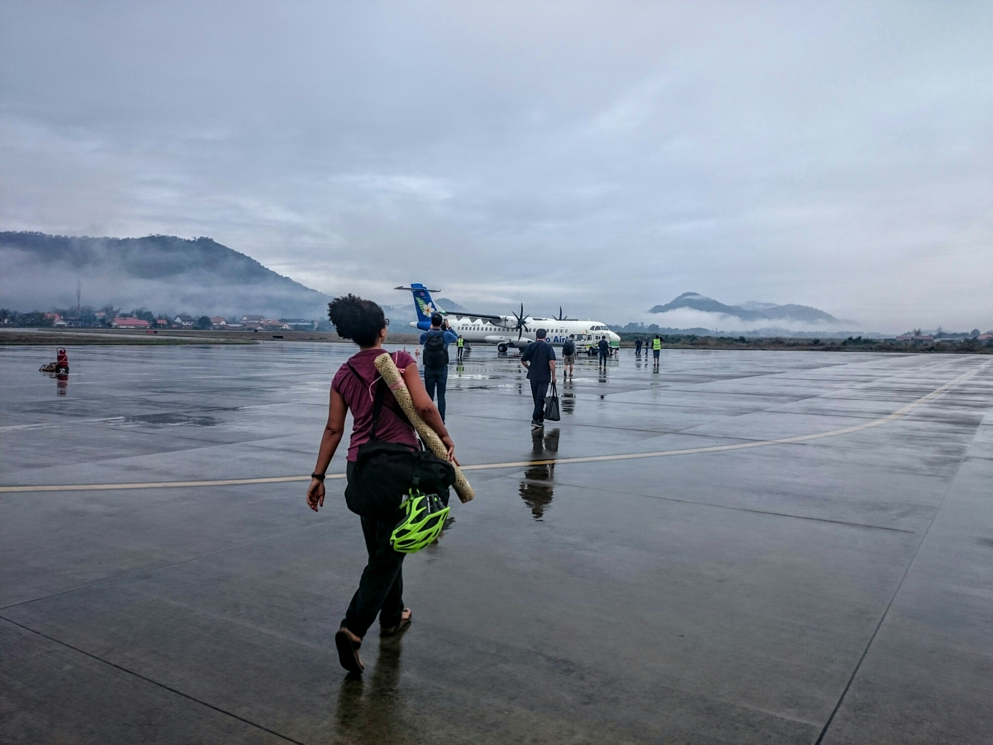 Anyway, this morning was particularly rainy, and in another fit of stubborn unreasonableness, we decided to bike the 6k to the airport at 5:45a in the pitch dark, pouring rain. This was not a great idea. Though the town is well-lit, the outskirts are not, so mix that with soaked and foggy glasses and we were basically riding blind. Traffic was light, though, and somehow we made it, but we got a lot of laughs from the check-in agent and others at the airport. Oh well, we were determined to bike!